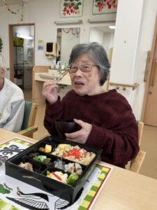 「今日のお昼いつもと違うじゃないの」と、H様。すんなりと完食されていました。