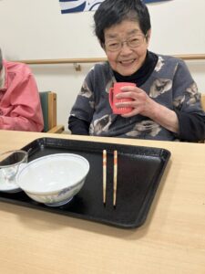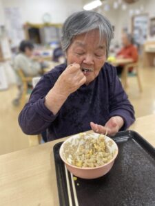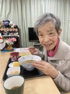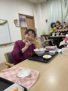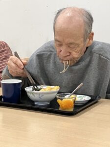 こちらは、2階に先日入居されたT様。「お家で食べるよりおいしく頂いていますよ」そんな声が聞こえてきそうな1枚です。