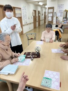 スタッフと一緒にビンゴゲームを行いました。
