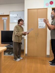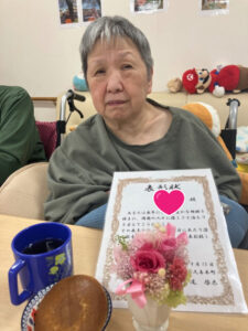 敬老の日にホーム長よりみなさまに賞状を授与させて頂きました✨