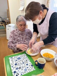 先日の節分レクリエーションの日に恵方巻に見立ててクレープを作りました💛