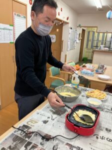 ホーム長自ら生地を焼いてくれましたが…(゚д゚)!