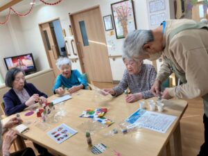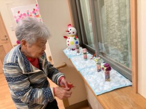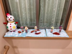 玄関先に落ちている桜の葉っぱも拾って来て乗せて