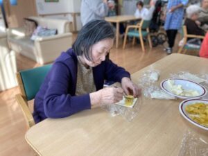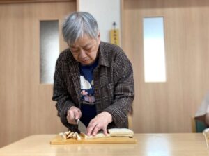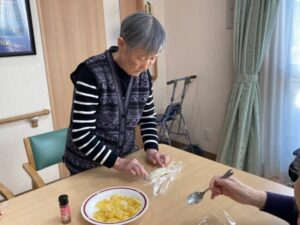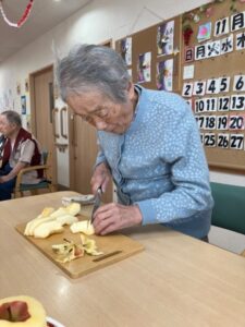 秋の味覚を皆さんで調理して、楽しいおやつの時間を過ごしました♪