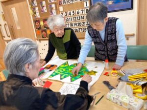 また、2階にはご入居者様が力を合わせて作ったツリーも飾られています。
