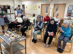 歌やビンゴなどで、クリスマスの雰囲気を味わっていただきました♬