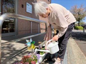 そして、桜の木の下のツツジも咲いており、散歩の際に皆さんで「綺麗ね」と眺めております。