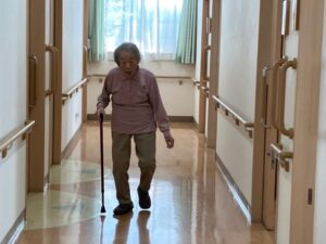 雨でお散歩に行けない日には、ホーム内を歩き、足の運動をしています。