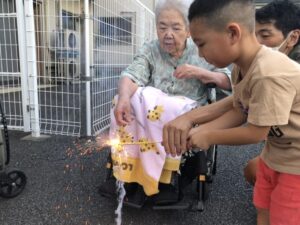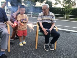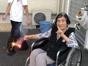 先日、ホームの前で毎年恒例の花火大会を行いました✨