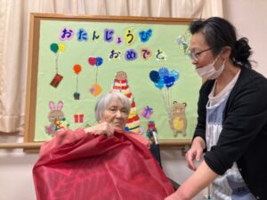 スタッフや他の入居者の皆さんからお祝いしていただきました( ´艸`)