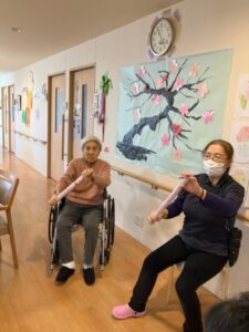 グループホームでの定期的に体操も取り組んでいます。
