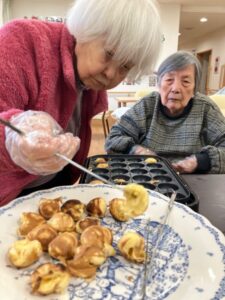 ②12月8日に2階でたこ焼きパーティーを行いました。