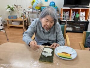 楽華生ユニットでは恵方巻作りに挑戦!