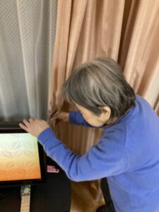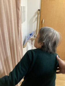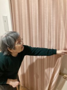 カーテンを閉めるTさん