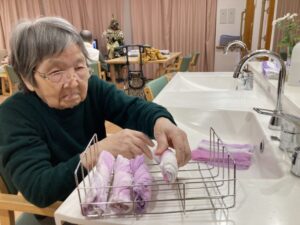 翌朝の顔拭きタオルを準備するTさん