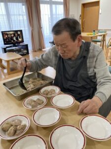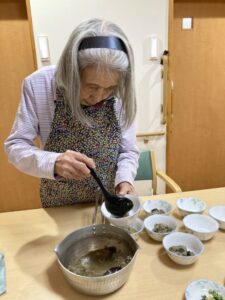 慣れた手つきで盛り付け