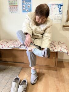 靴を履き替え中のMさん