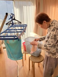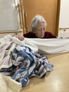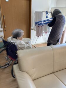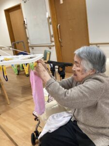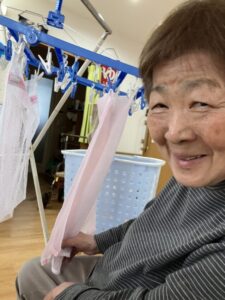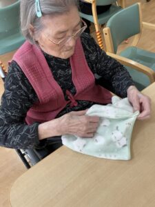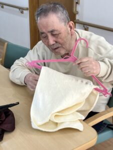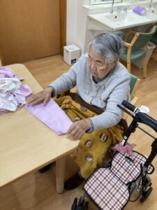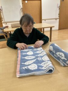 タオルを畳むSさん