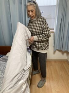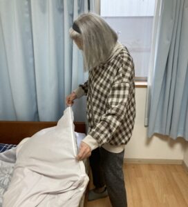 Mさんは布団カバーで苦戦中