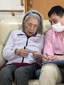 黙々と編み続けるOさん