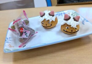 可愛い鬼のシュークリームと、甘納豆です。