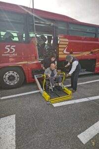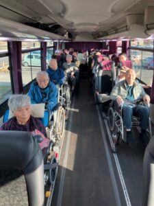 大型バスを借りて、入居者全員での外出です。