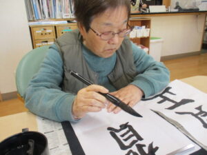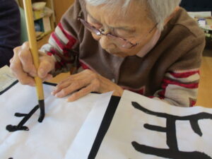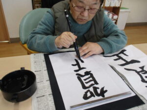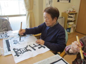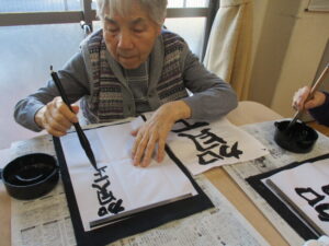 1階で書初めを