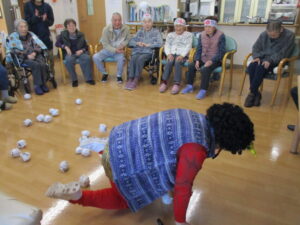 ボールを投げ入れるゲームをしました!