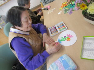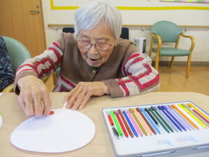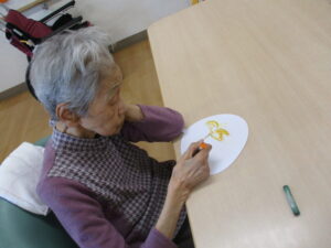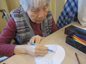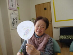 まずは、うちわに絵を描いて