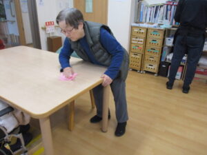 テーブルを拭いていただく