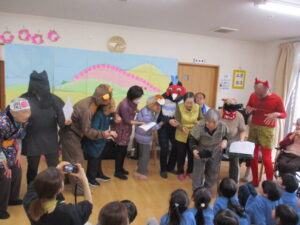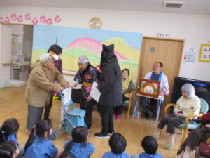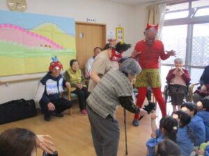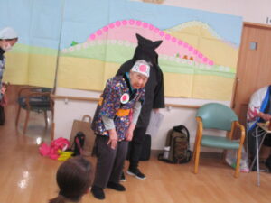 「鬼だぞ~👹」と、おもちゃのこん棒を