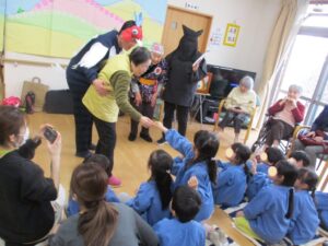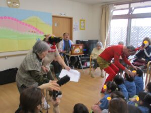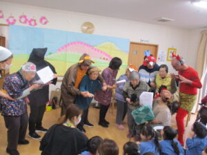「ももたろう」紙芝居と歌と劇を