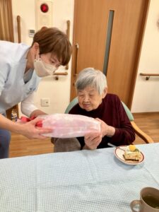 「おいくつになったの?」「元気が一番!」「本当に人生100年時代ねぇ」などなど、皆さまからお祝いのお言葉を頂き、賑やかな会となりました。