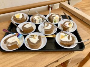 15時のおやつに、「恵方巻ロールケーキ」でお祝いをしていると…