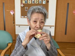 豆まきは片付けや安全を考慮して小分けの袋入りで行ないました。