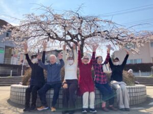 桜の木の下で散歩に行ったメンバーで写真を撮りました♪