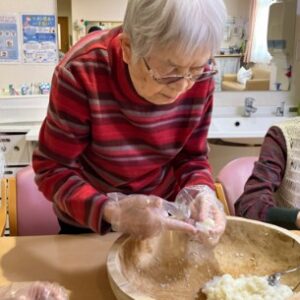 スタッフ間で話し合い、皆さんで団子を作るレクを開催!!!