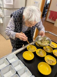 ↑お昼の盛り付けを手伝っていただきました♪