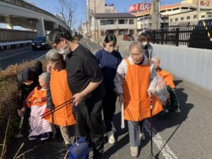 今回は、1階2階のご入居者様とホーム周辺の清掃活動を行いました。