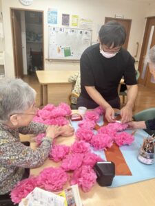 何気ない日常生活ですが、ご入居者様が主役となれるようにお手伝いをお願いしております。
