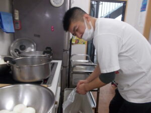 何故か私は半笑いで卵の殻を剥いています💦
