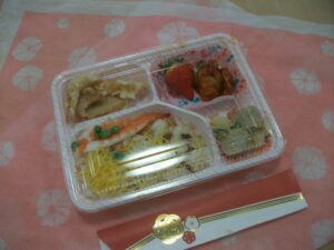 昼食ではひな祭り弁当を調理スタッフさんが作って下さいました。