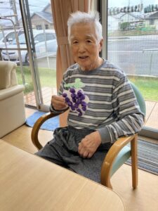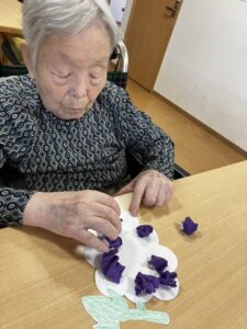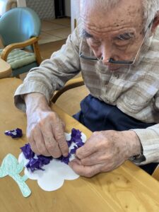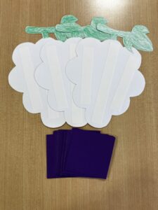 両面テープを貼り小さい紫の折り紙を用意しました!