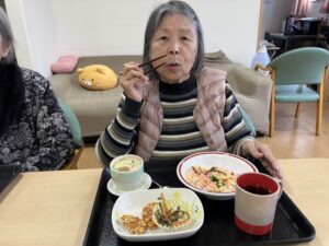 ちらし寿司、茶碗蒸し、カラフルなアラレが衣のから揚げなど、