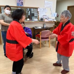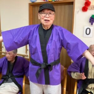 法被を着ると、「こんないいもの着せてもらって」と笑顔になられました😊