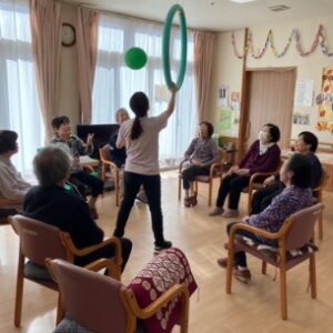 なかなか難しく、皆さん頑張って輪に投げられていました。