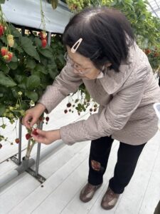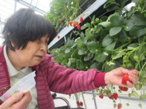 いちご狩りがスタートすると、いちごを選ばれもくもくと
