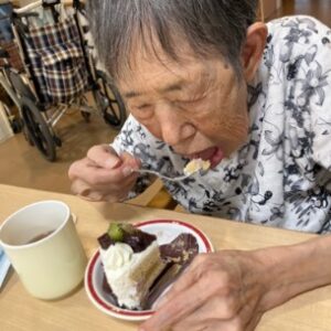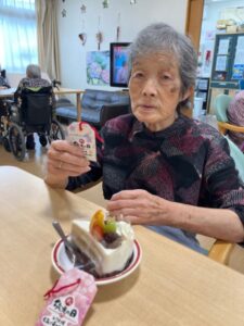 また、おやつの時間にはケーキを召し上がっていただきました😆