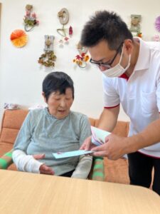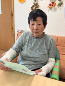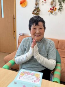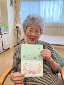 「いつまでもお元気でいてください」というメッセージに皆様喜ばれ「長生きします!」と笑顔で言われていました!