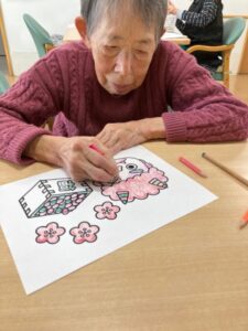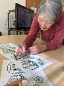 日々の生活の中で入居者様は自由にゲームをされたり、行事に向けた作品を作ったりしています。